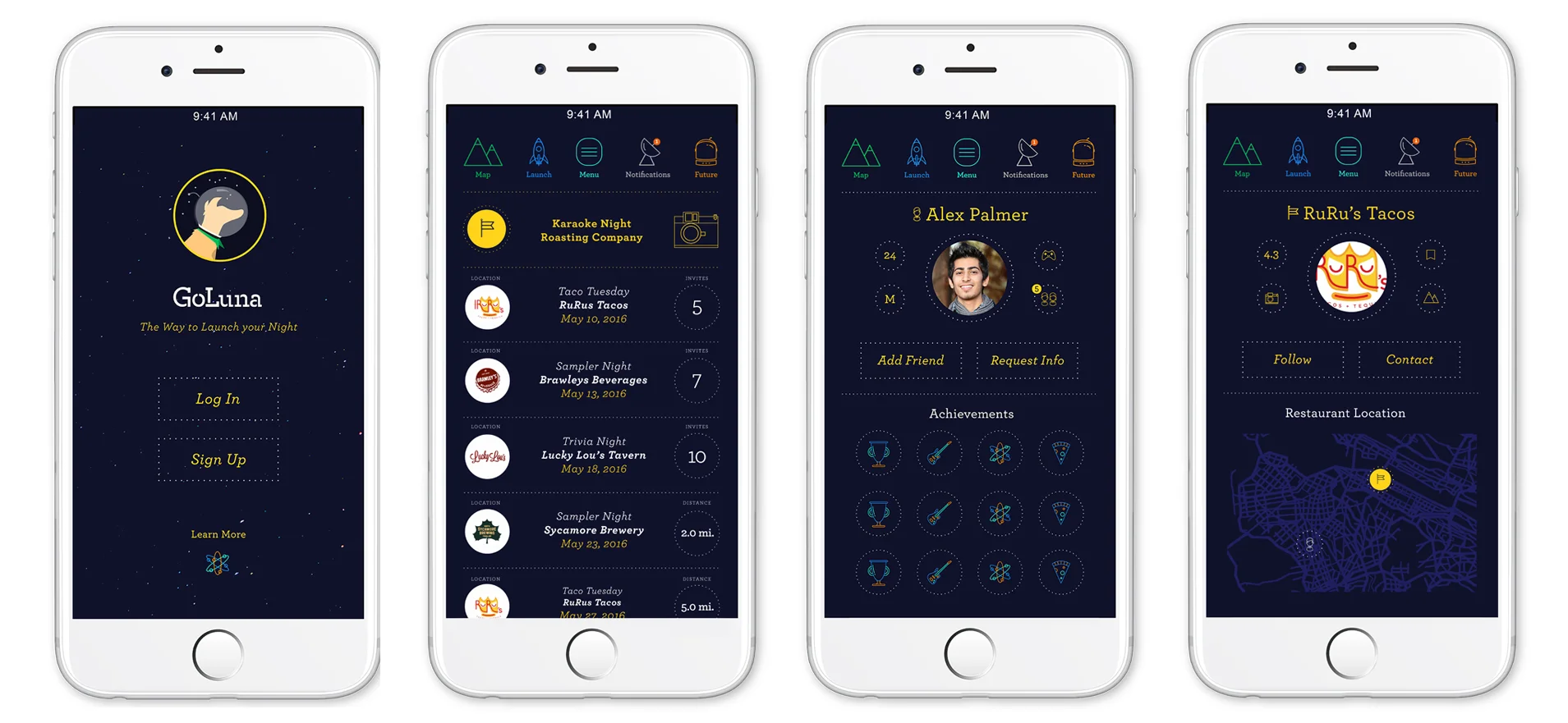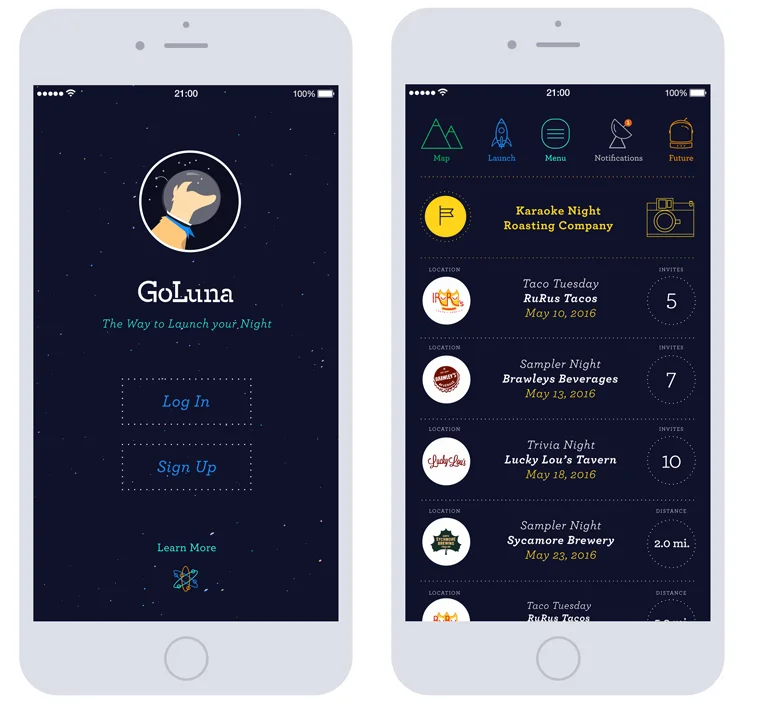 I was tasked with creating the overall branding, landing page, and mobile UI for a new social app called, GoLuna.
